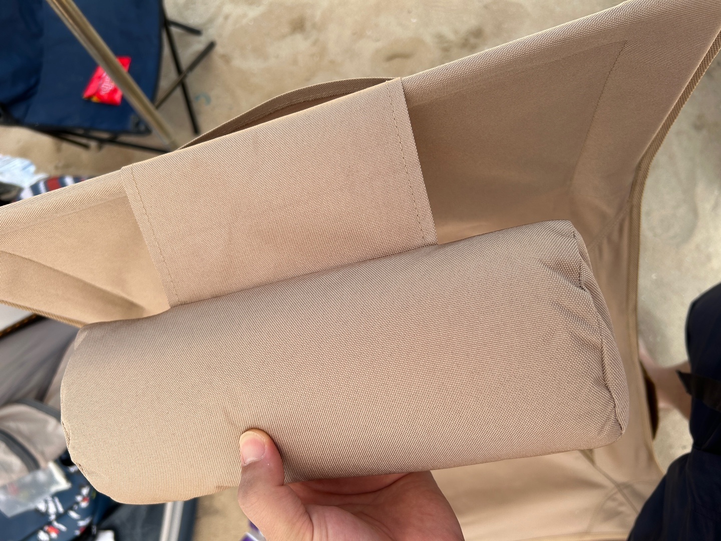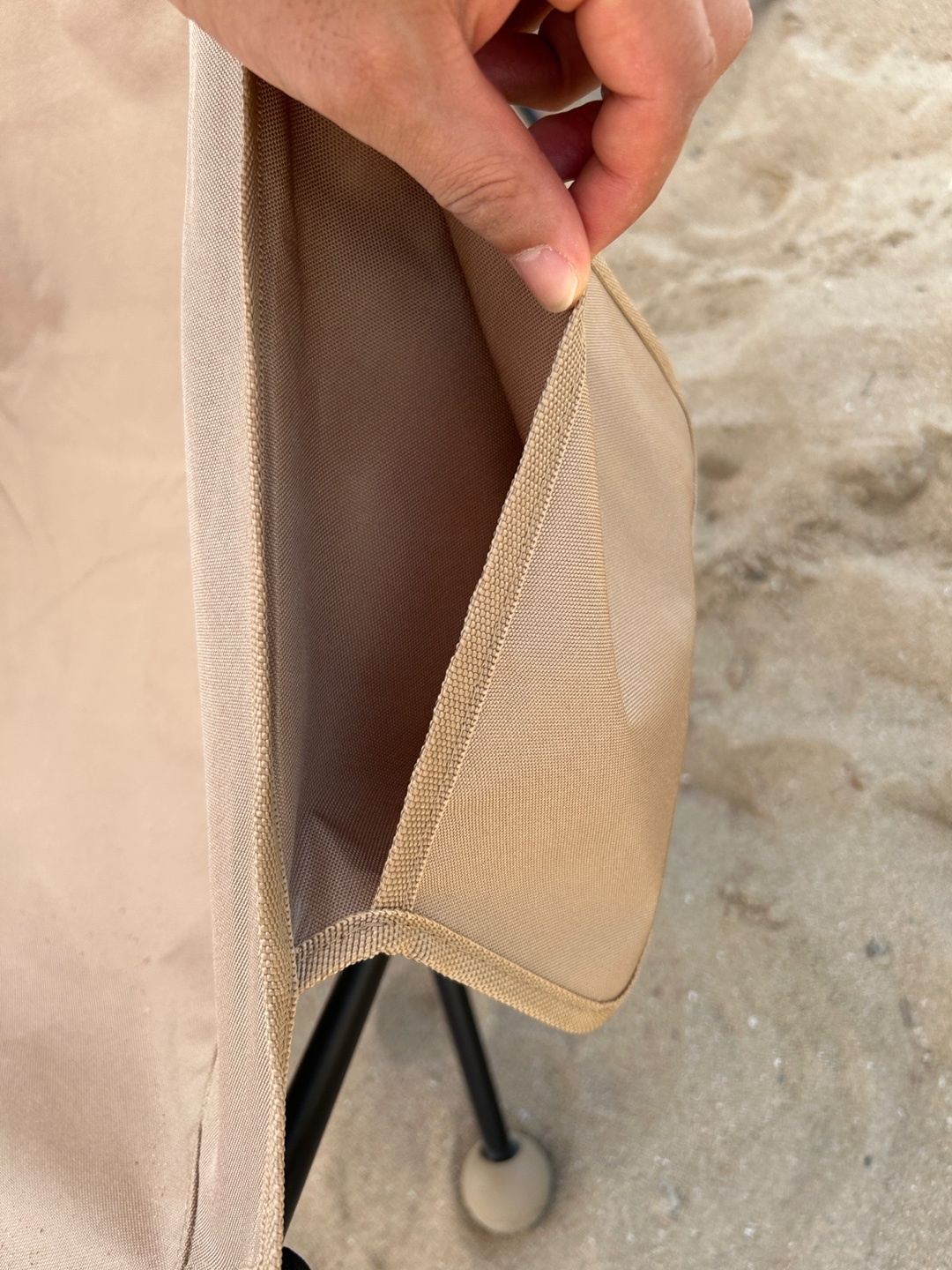 볼캡을 모래사장에서도 안정적으로 밸런스를 유지시켜주고 목베게가 들어있는 공간에는 의자 가방을 수납하면 분실위험 제로