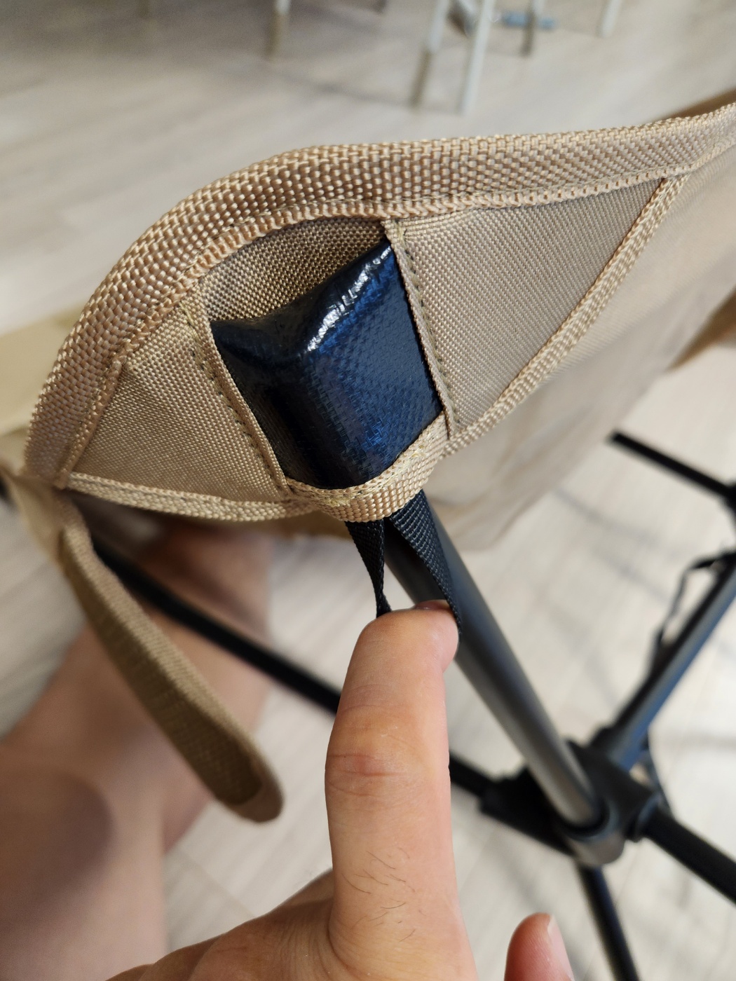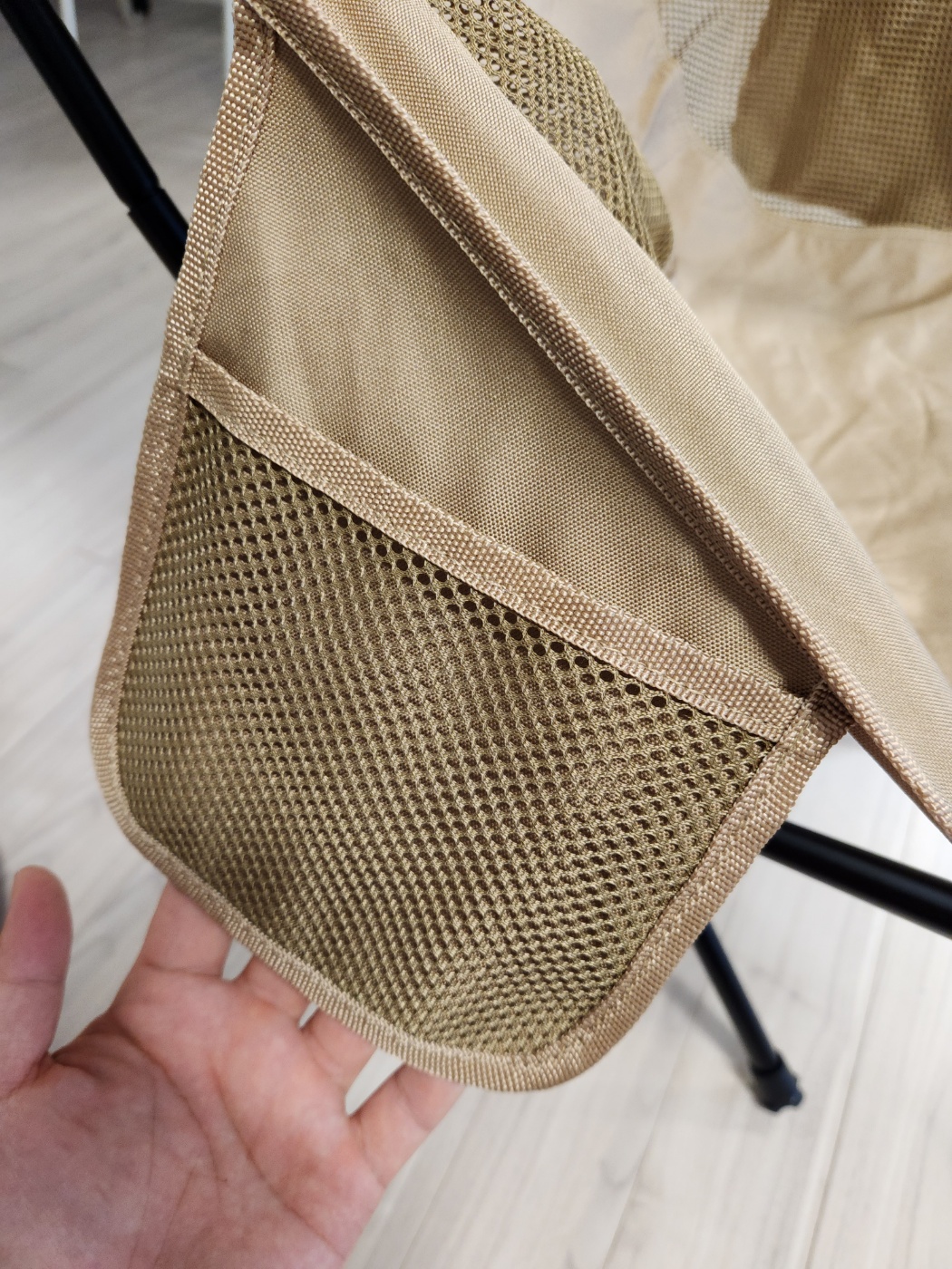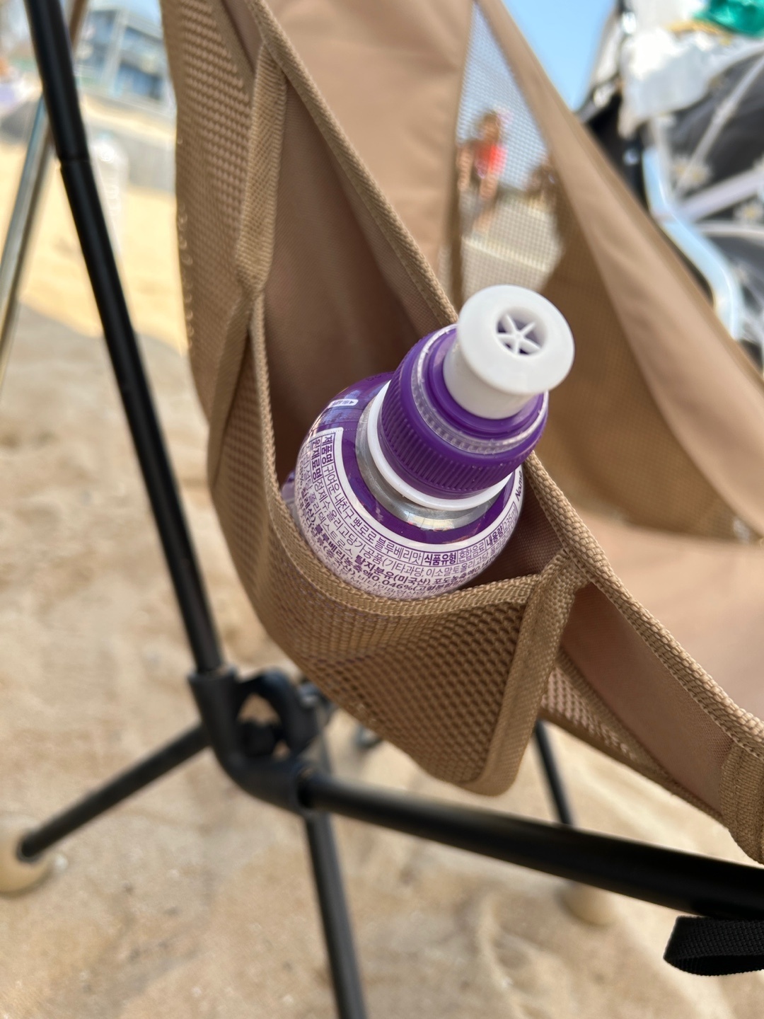 양쪽에 팔걸이엔 음료를 꼽기 최적화되어있다. 지금 사용하는 의자에는 컵홀더가 없어 매우 불편했는데 수납+컵홀더로 최강의 주머니가 양쪽으로 비치되어있다. 매쉬주머니에는 핸드폰을...